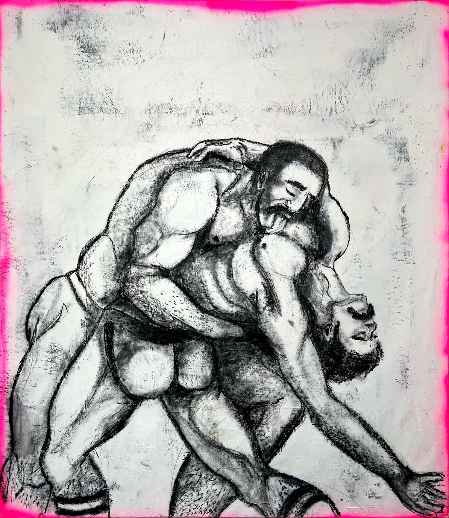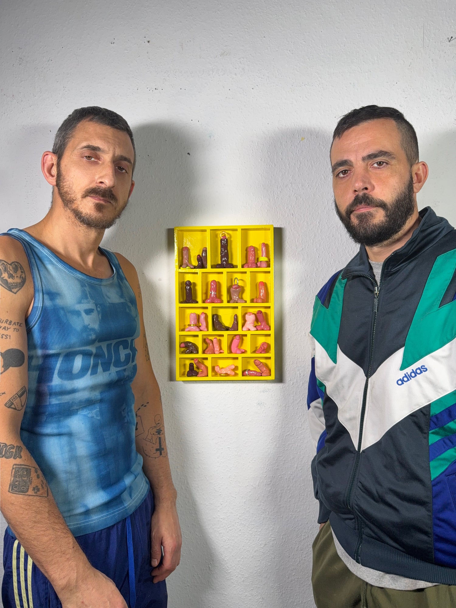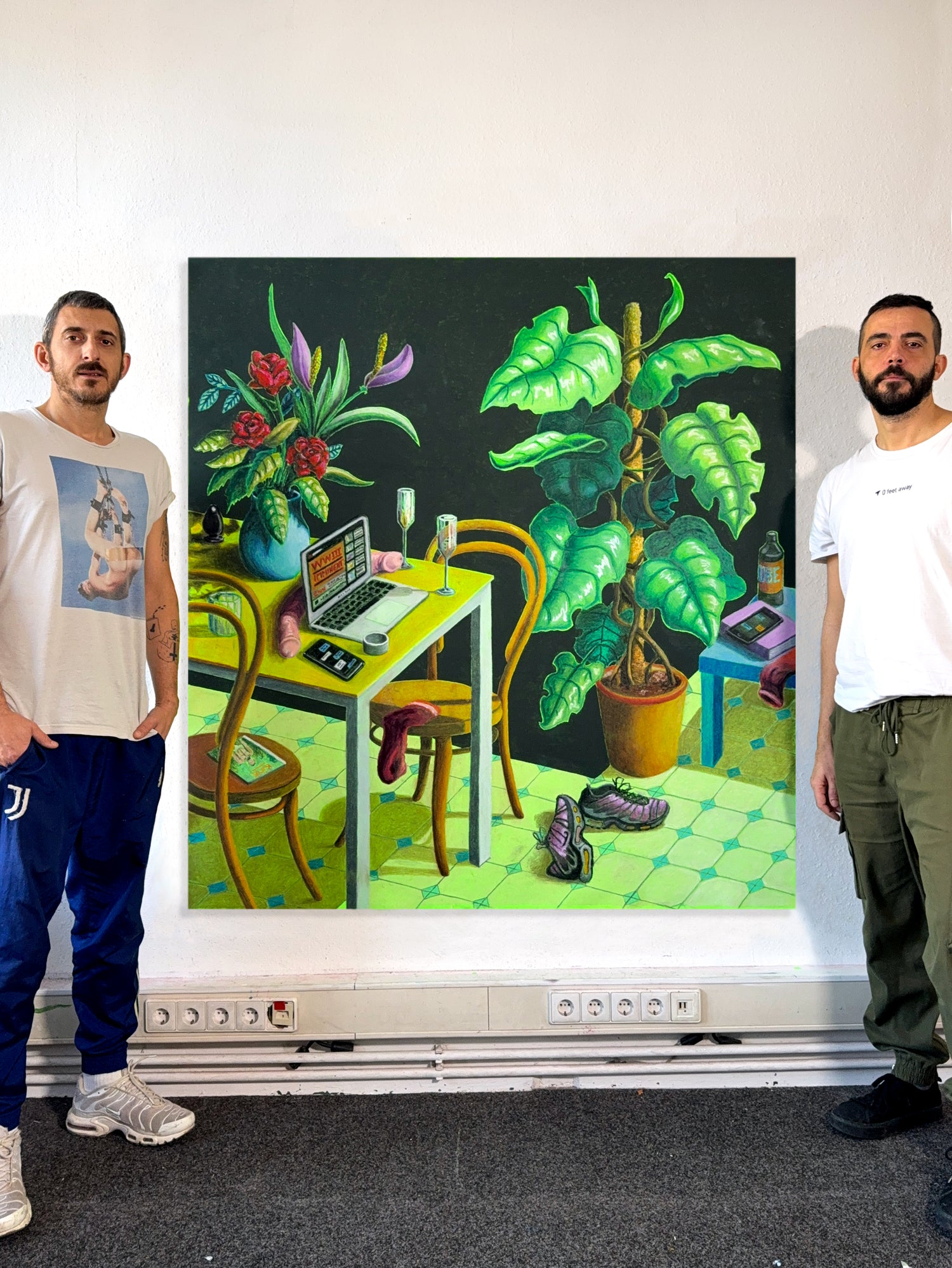 a queer artist duo and couple from Berlin. Through our work, we explore identity, intimacy, and the human impact on the planet—drawing from queer history, culture, and our own relationship. Named after our mothers’ maiden names, we live and work together in Berlin, have exhibited in New York, Vienna, and Berlin, and our works are held in private collections worldwide.