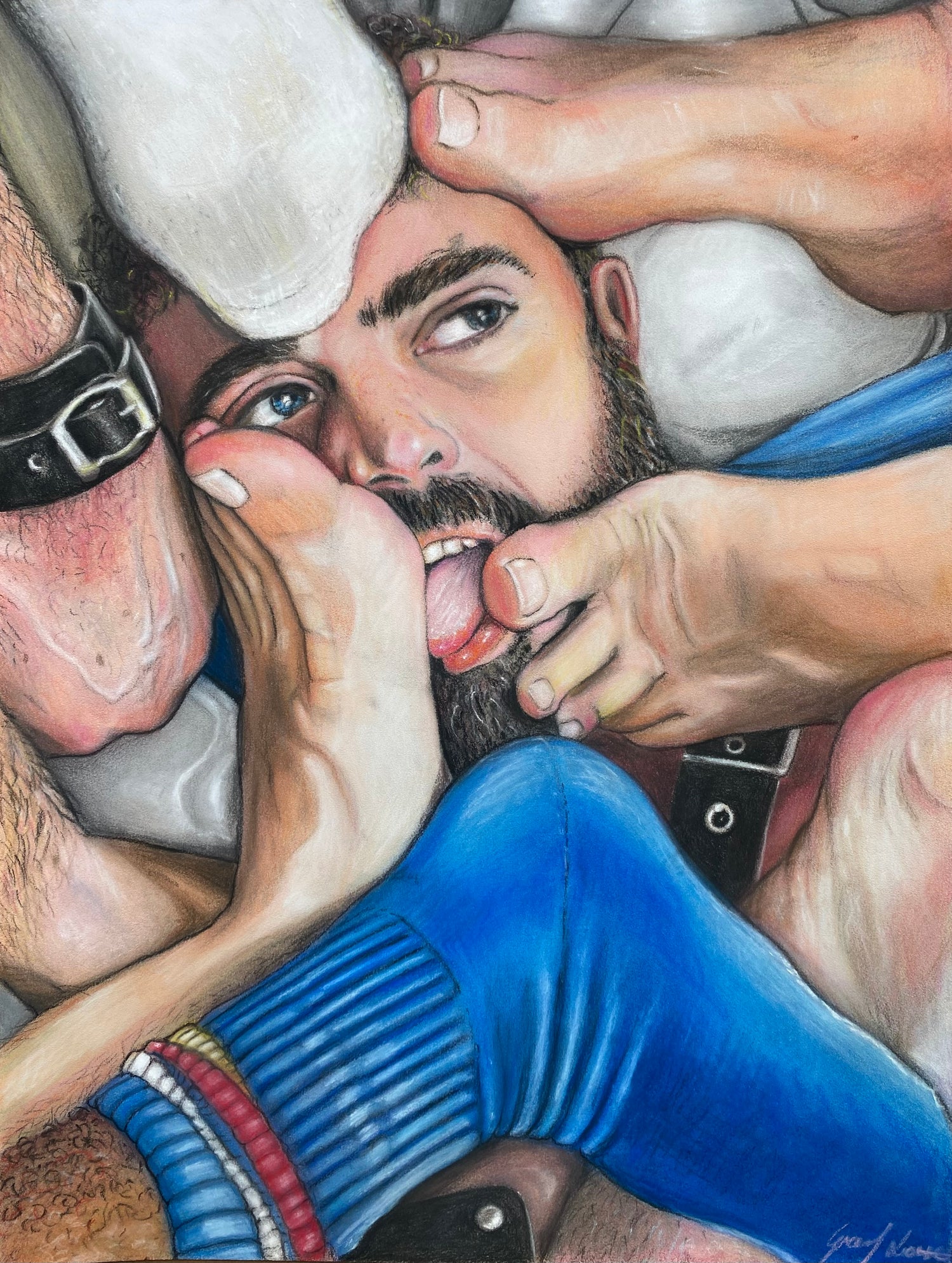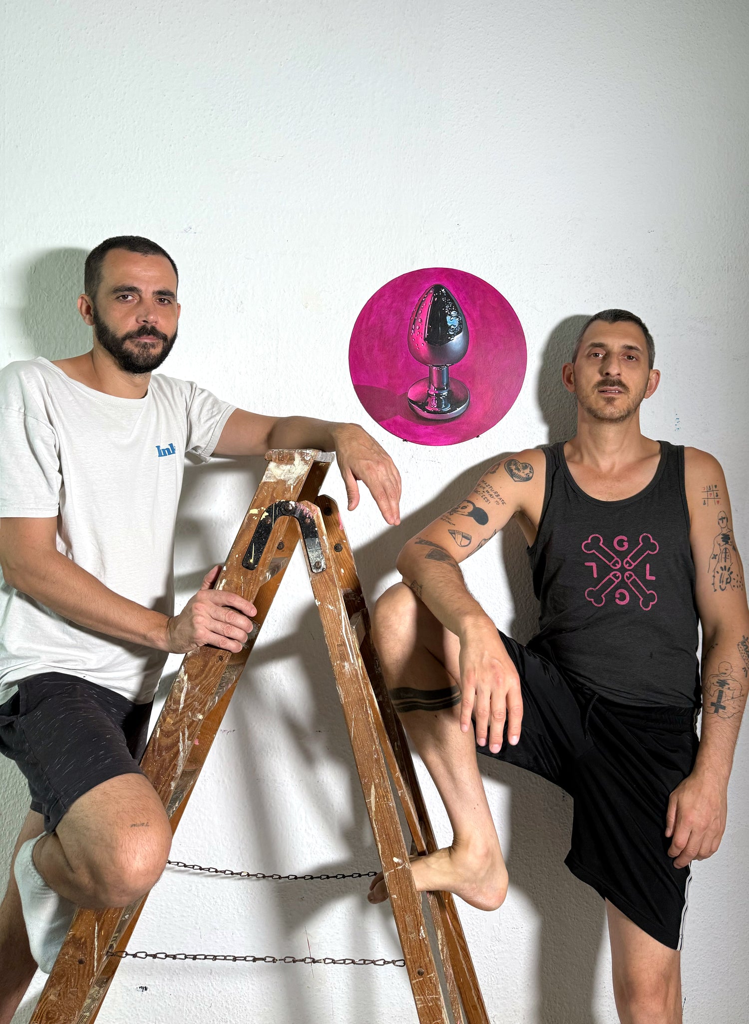 a queer artist duo and couple from Berlin. Through our work, we explore identity, intimacy, and the human impact on the planet—drawing from queer history, culture, and our own relationship. Named after our mothers’ maiden names, we live and work together in Berlin, have exhibited in New York, Vienna, and Berlin, and our works are held in private collections worldwide.