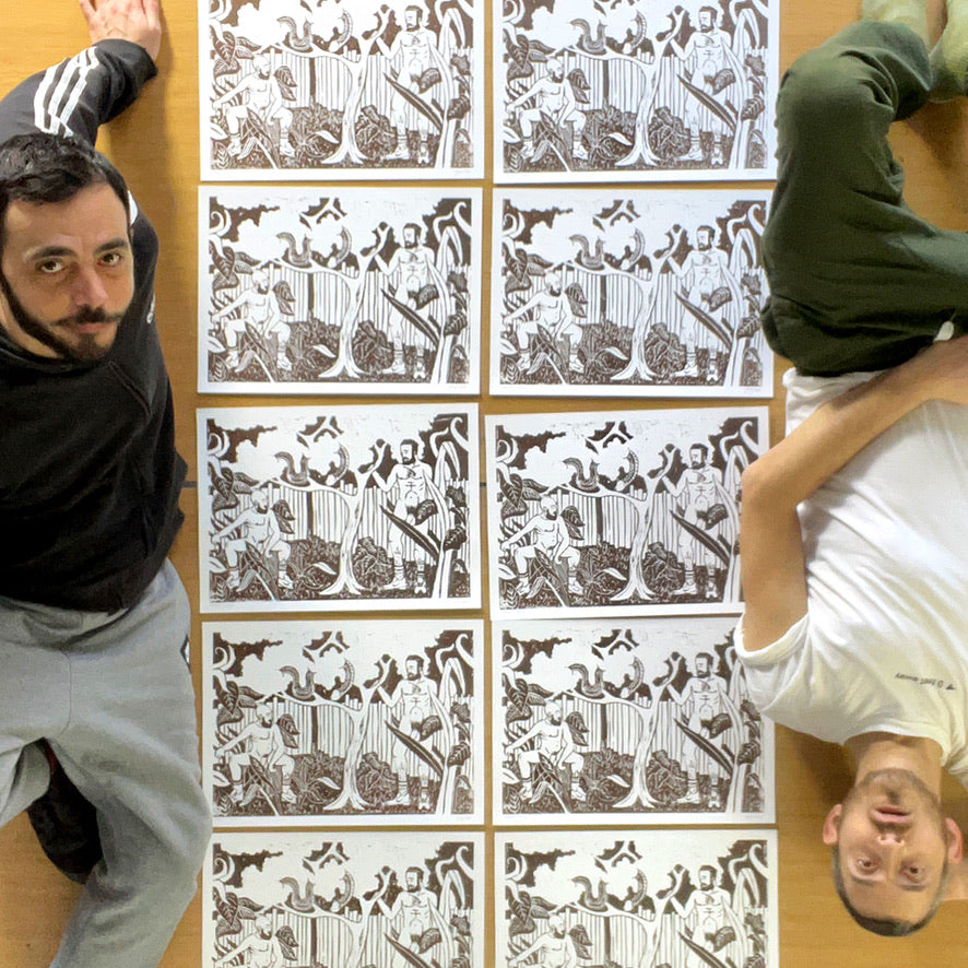 Limited edition of 20. Linocut print with sepia brown ink on Fabriano 220gsm smooth paper. Prints are handmade and may slightly vary from the picture.
