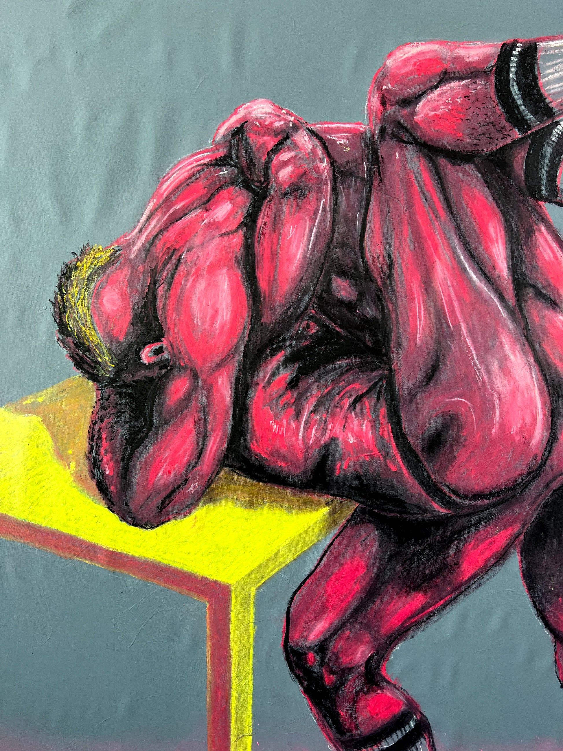 140 x 120 cm Acrylic, oil sticks, gesso and varnish on stretched canvas.