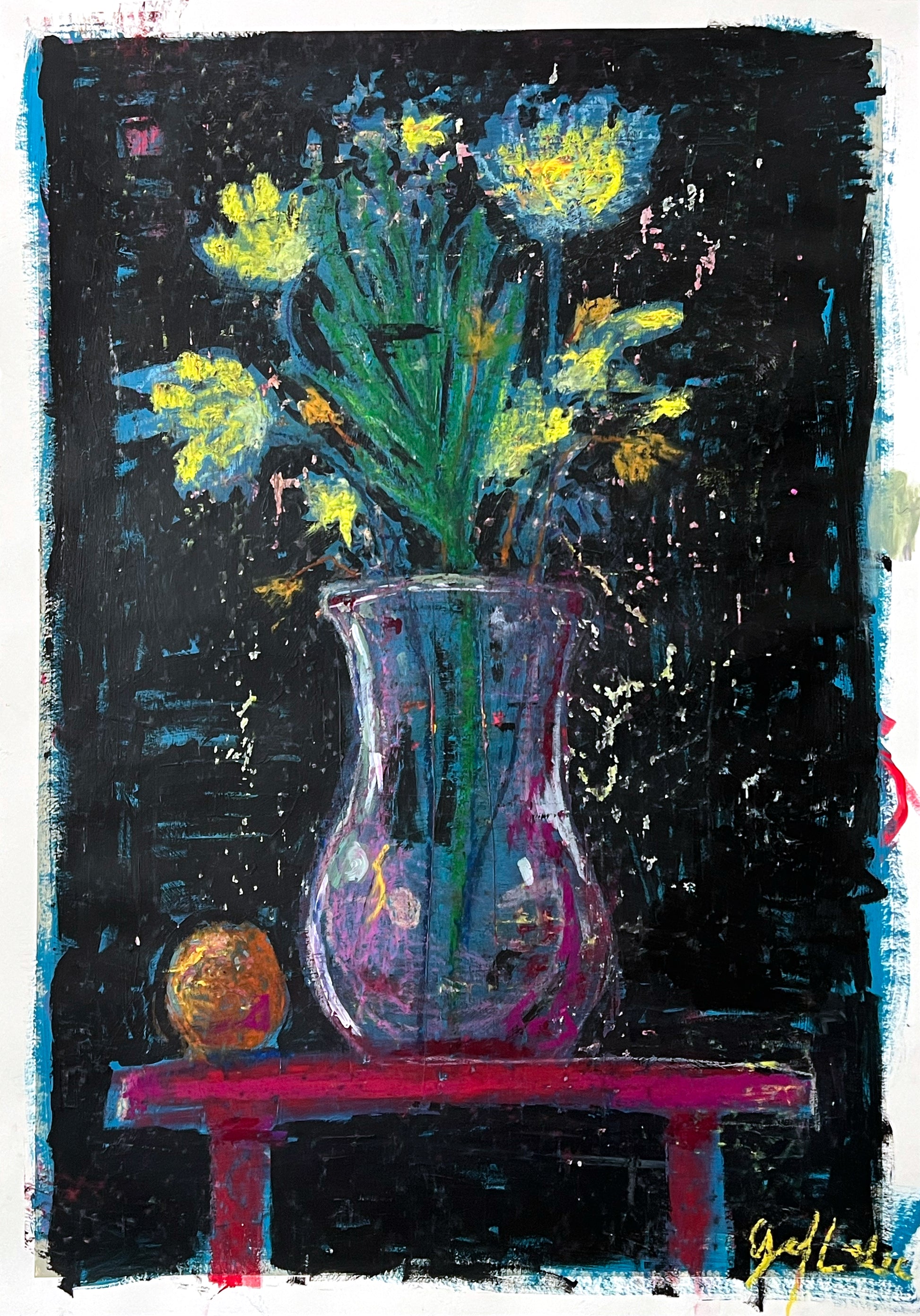 Flowers in the Dark, Painting/Drawing, 84,1 x 59,4 x 0,15 cm, Acrylics, pastel and spray varnish on paper, 2022.