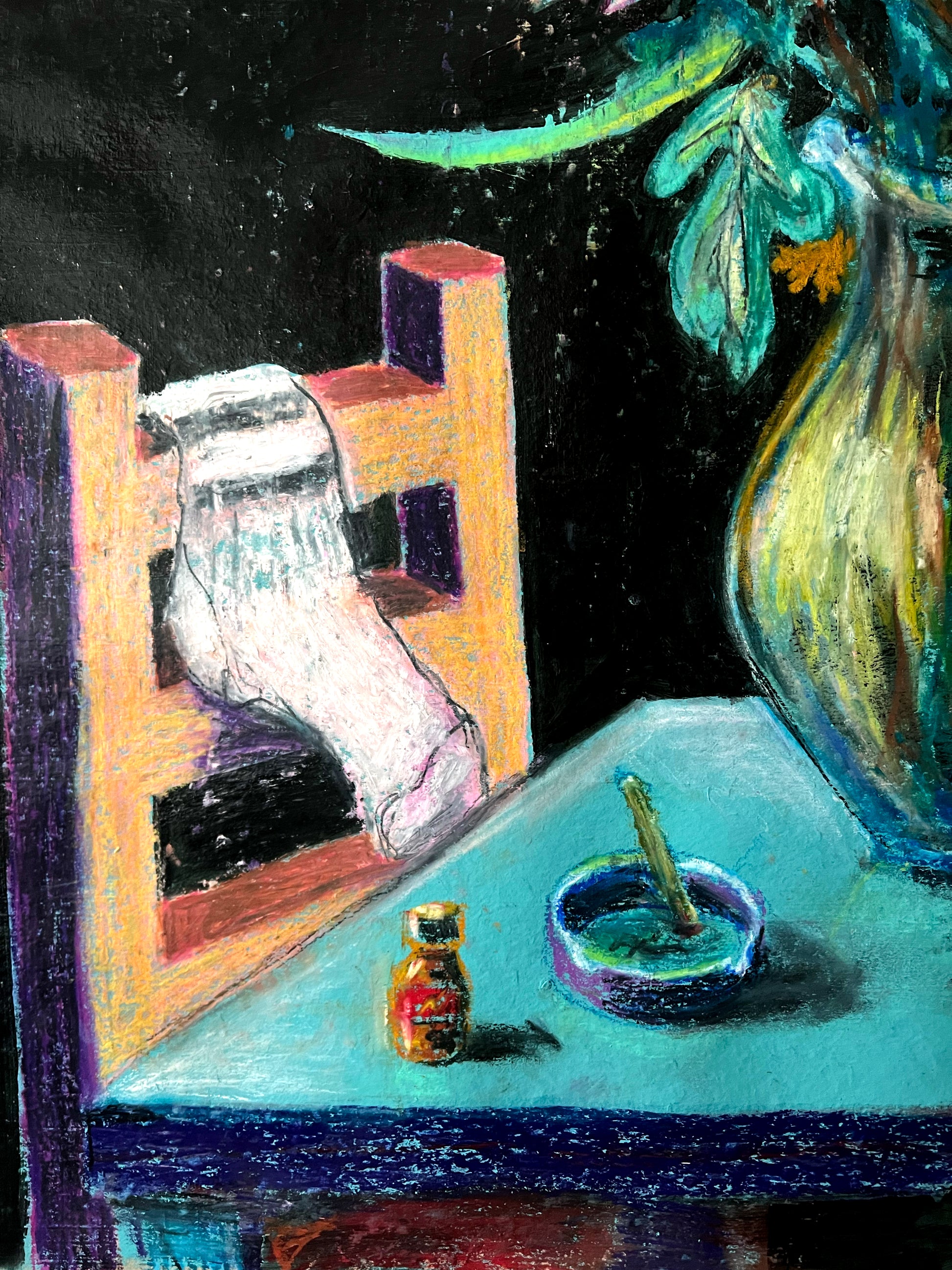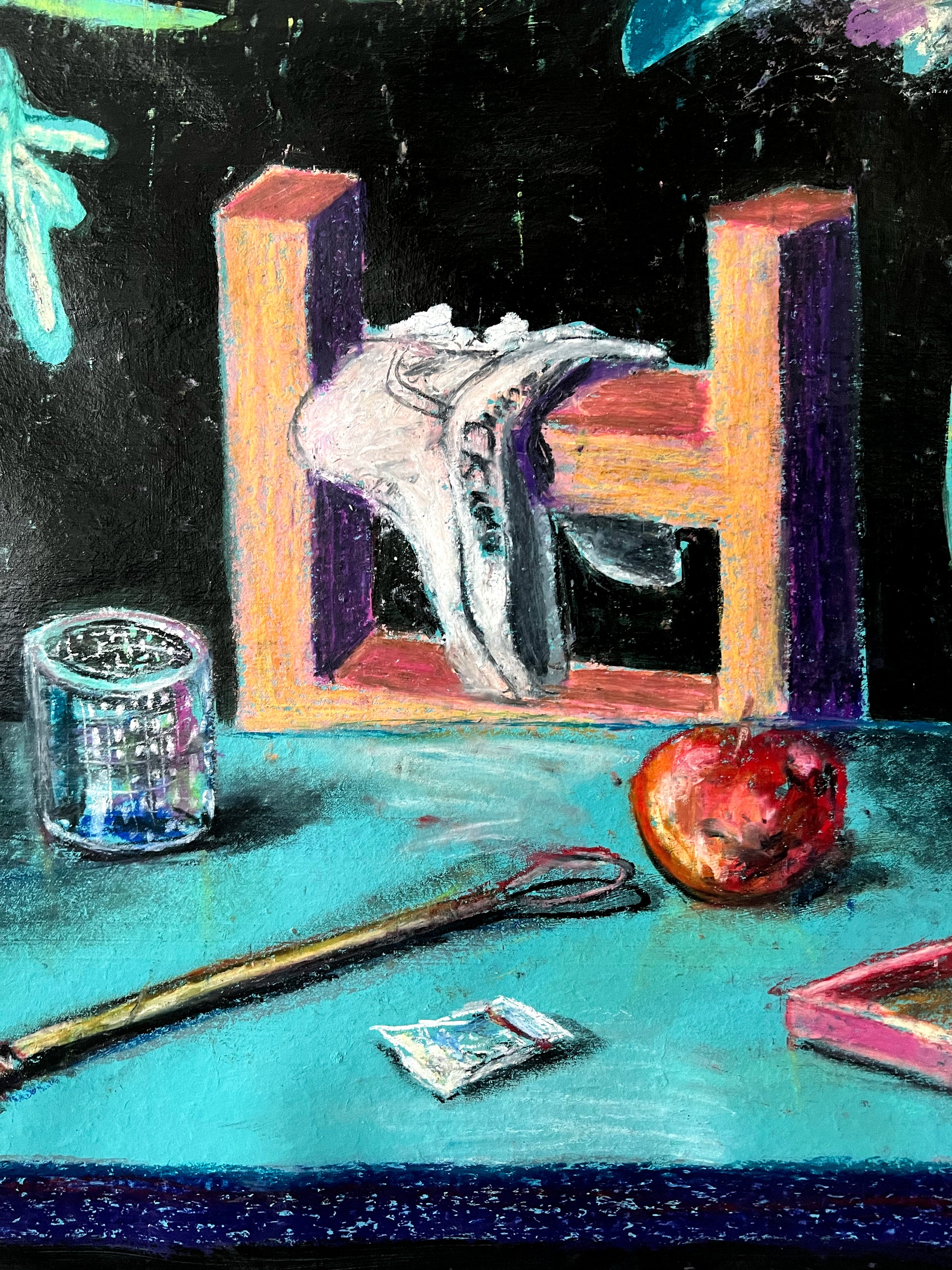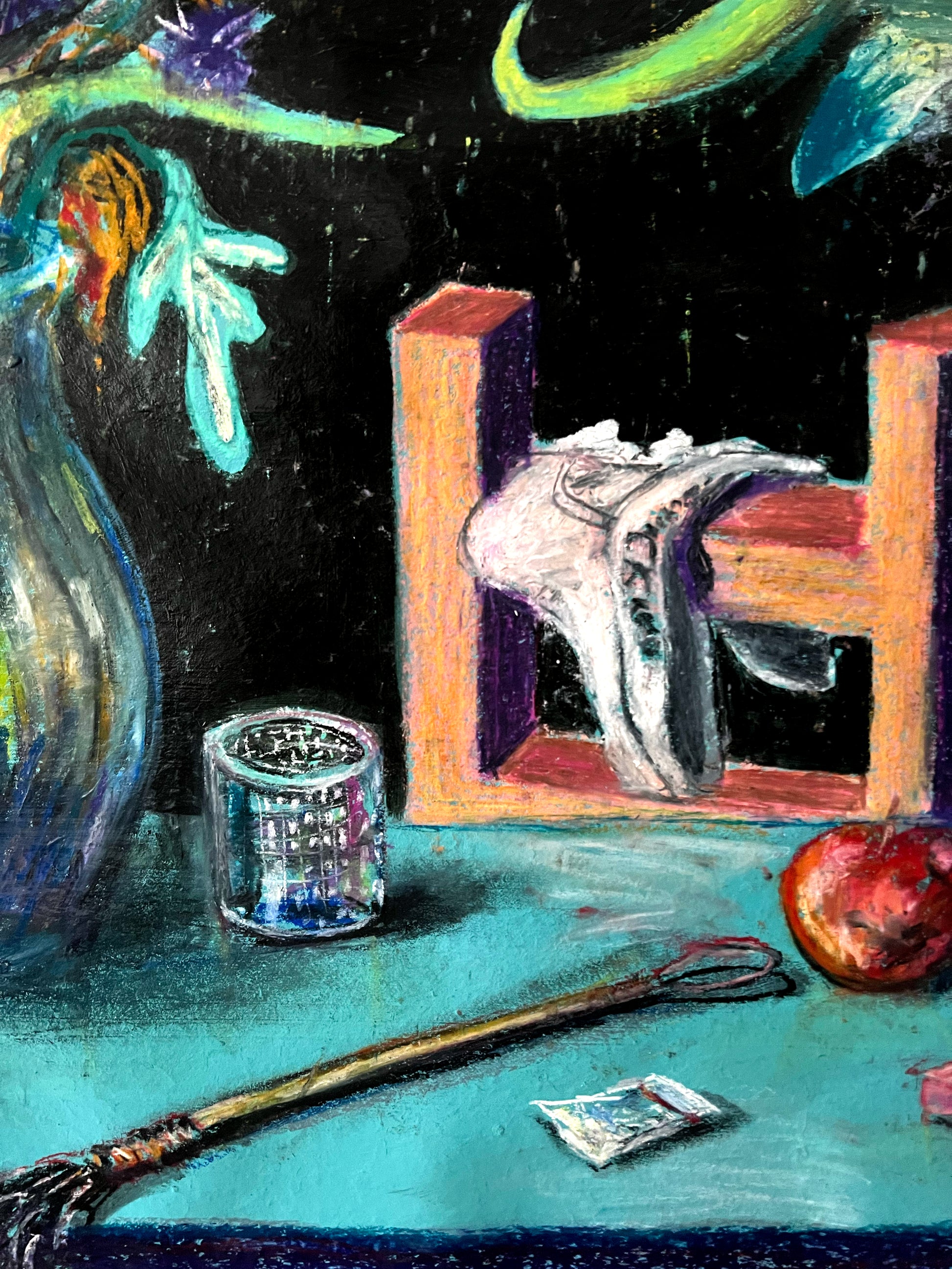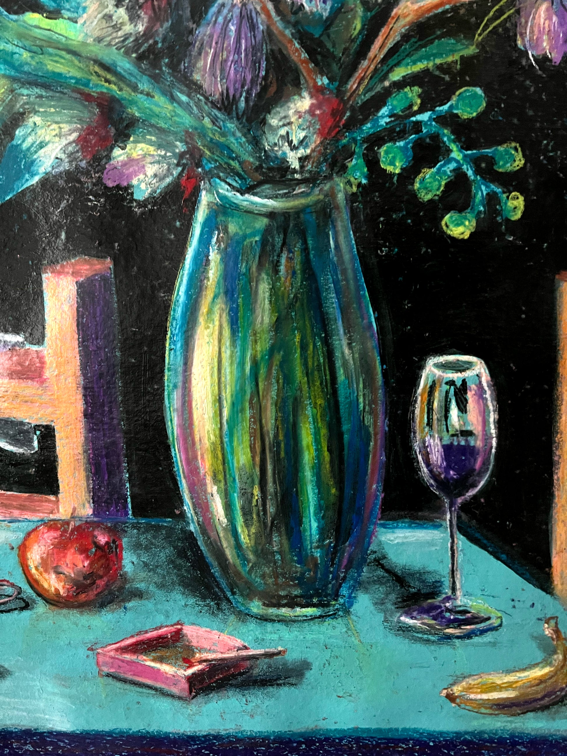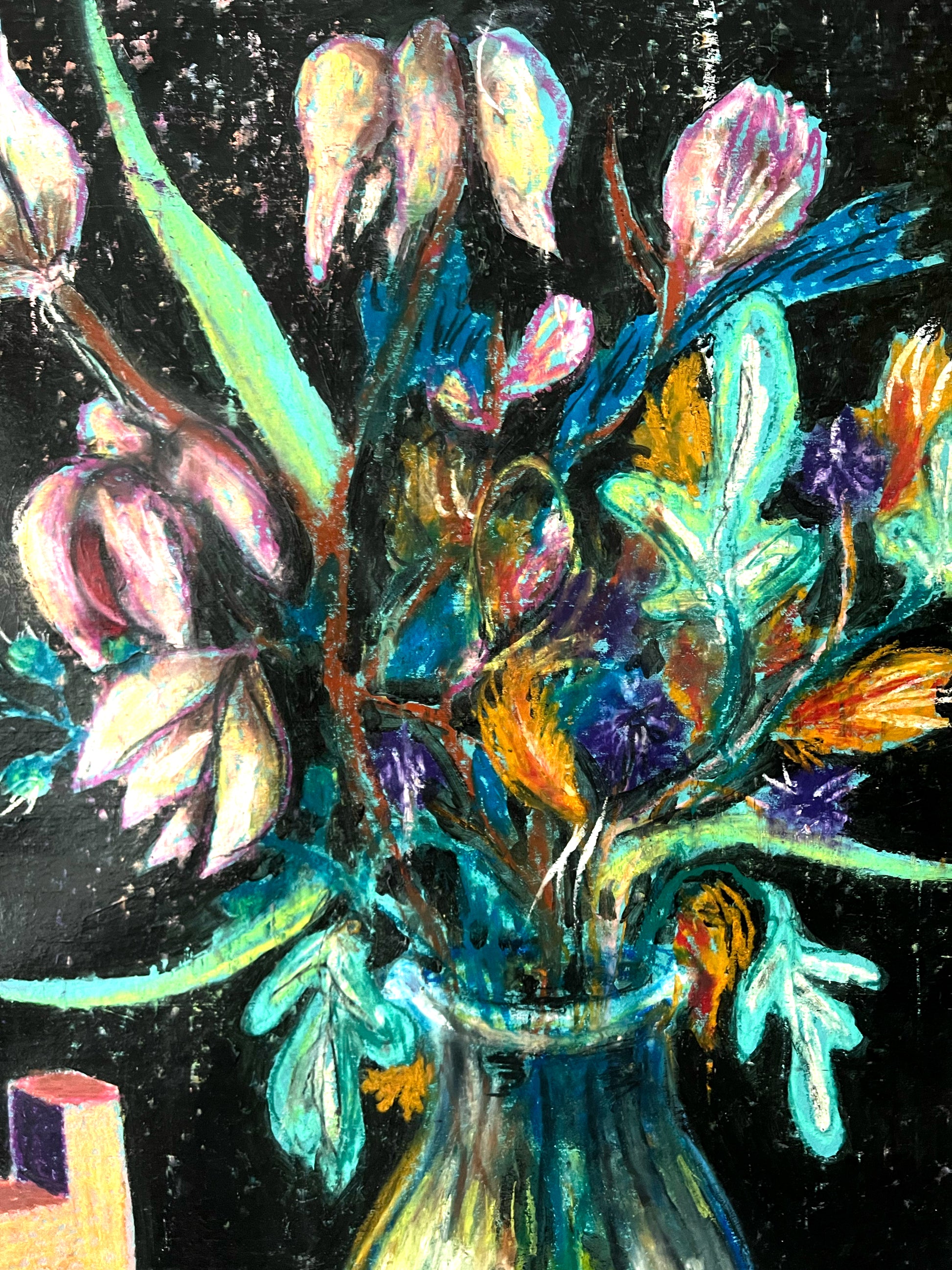 Flowers in the Dark, Painting/Drawing, 100 x 150 x 0.15 cm, Acrylics, pastel and spray varnish on brown thick paper, 2022.