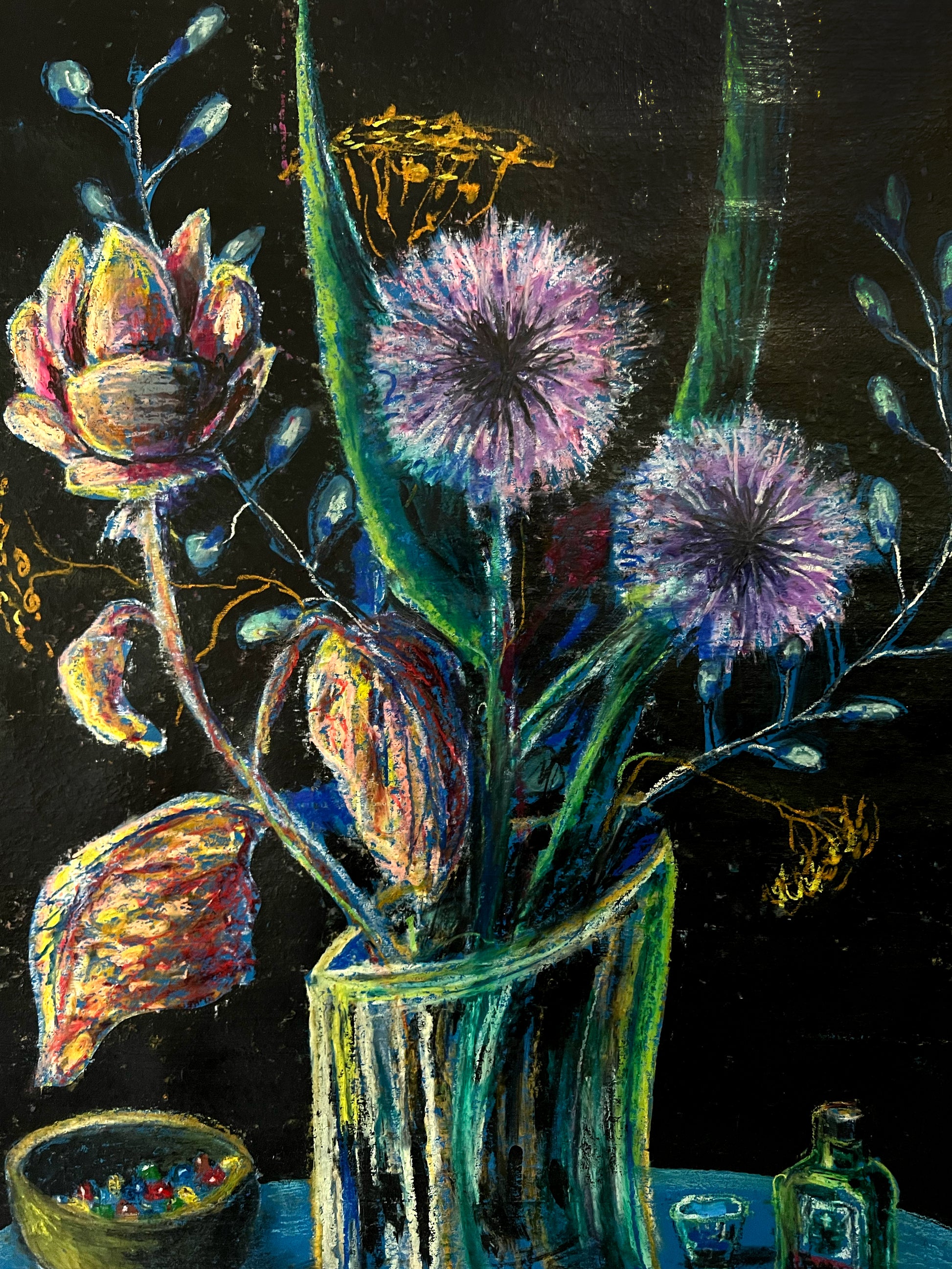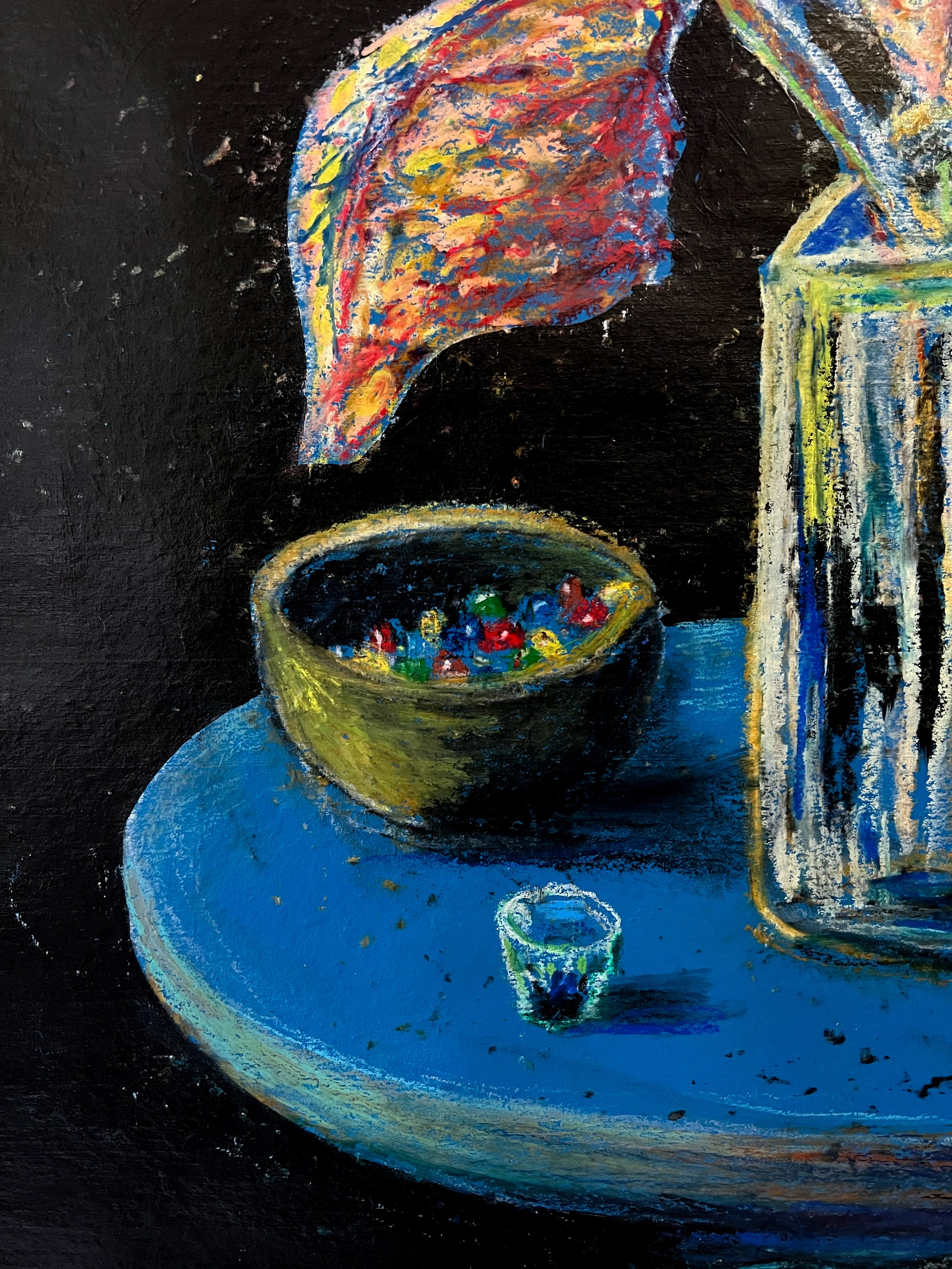 100 x 100 x 0.15 cm, Acrylics, pastel and spray varnish on brown thick paper, 2022.