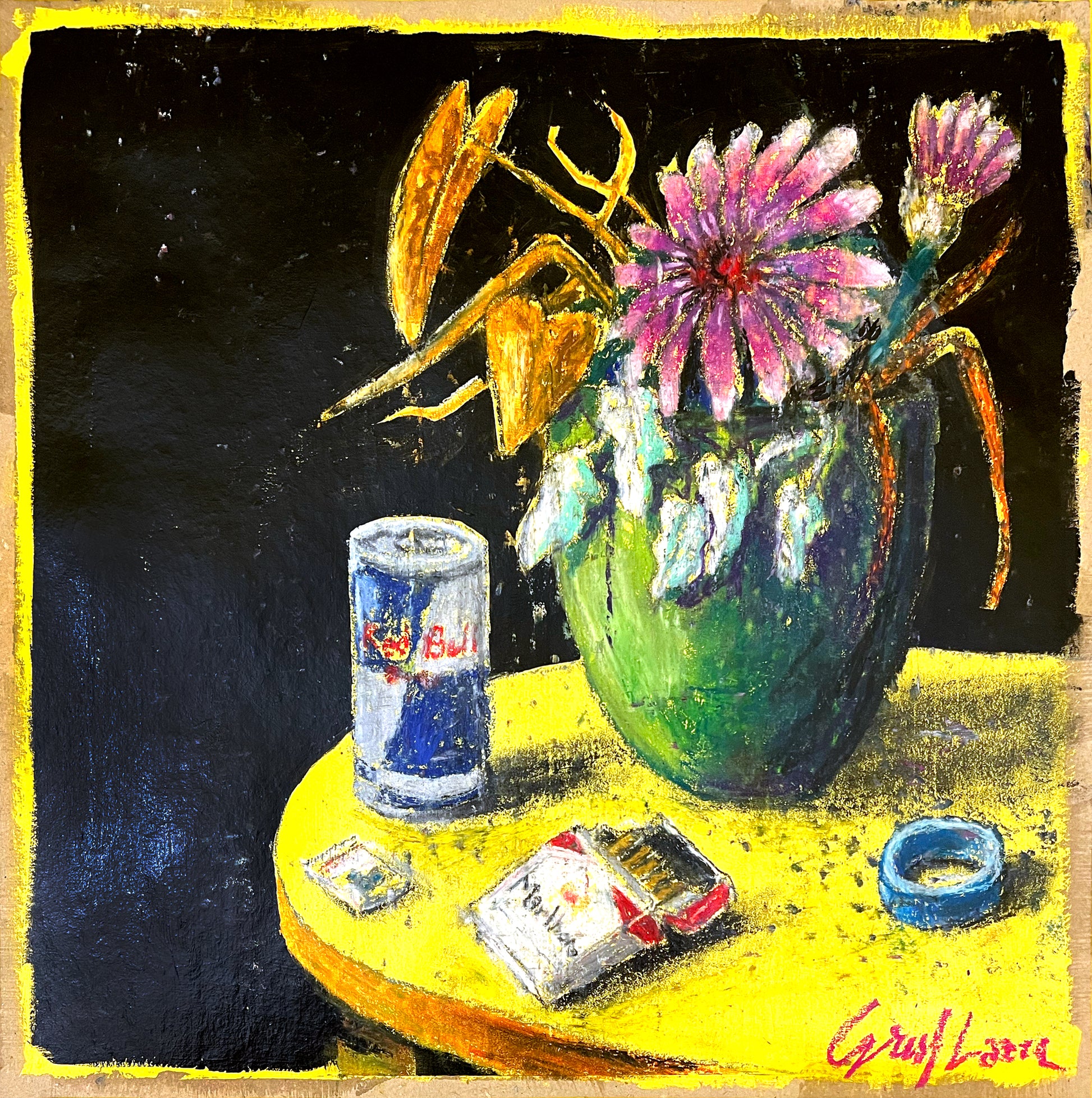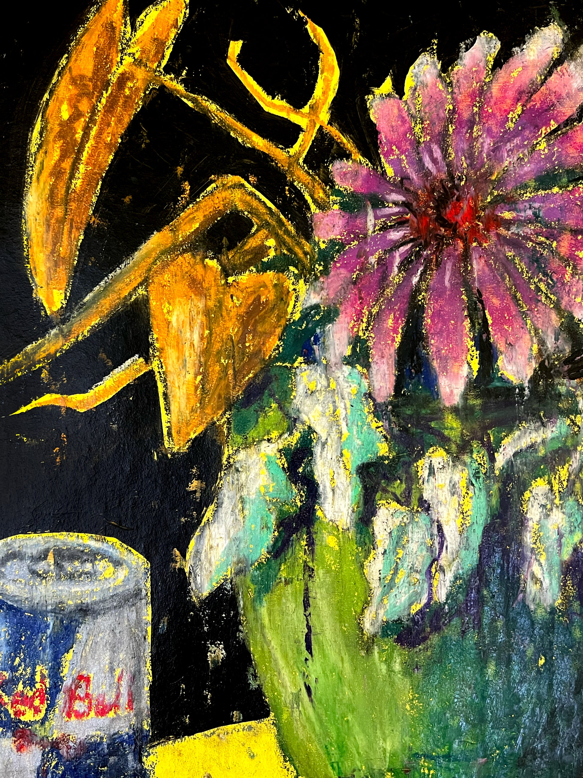 Flowers in the Dark, Painting/Drawing, 50 x 50 x 0.15 cm, Acrylics, pastel and spray varnish on brown thick paper, 2022.