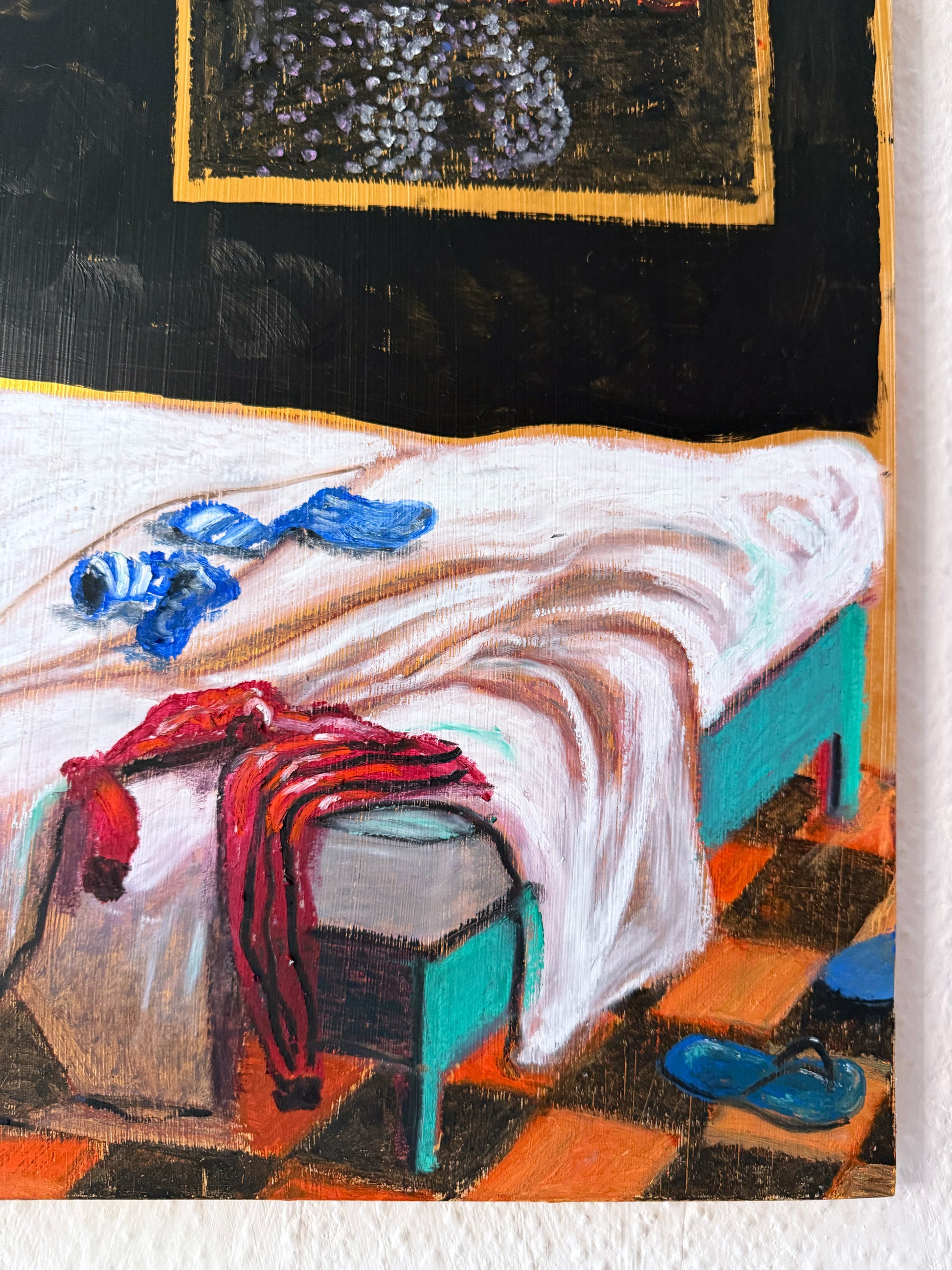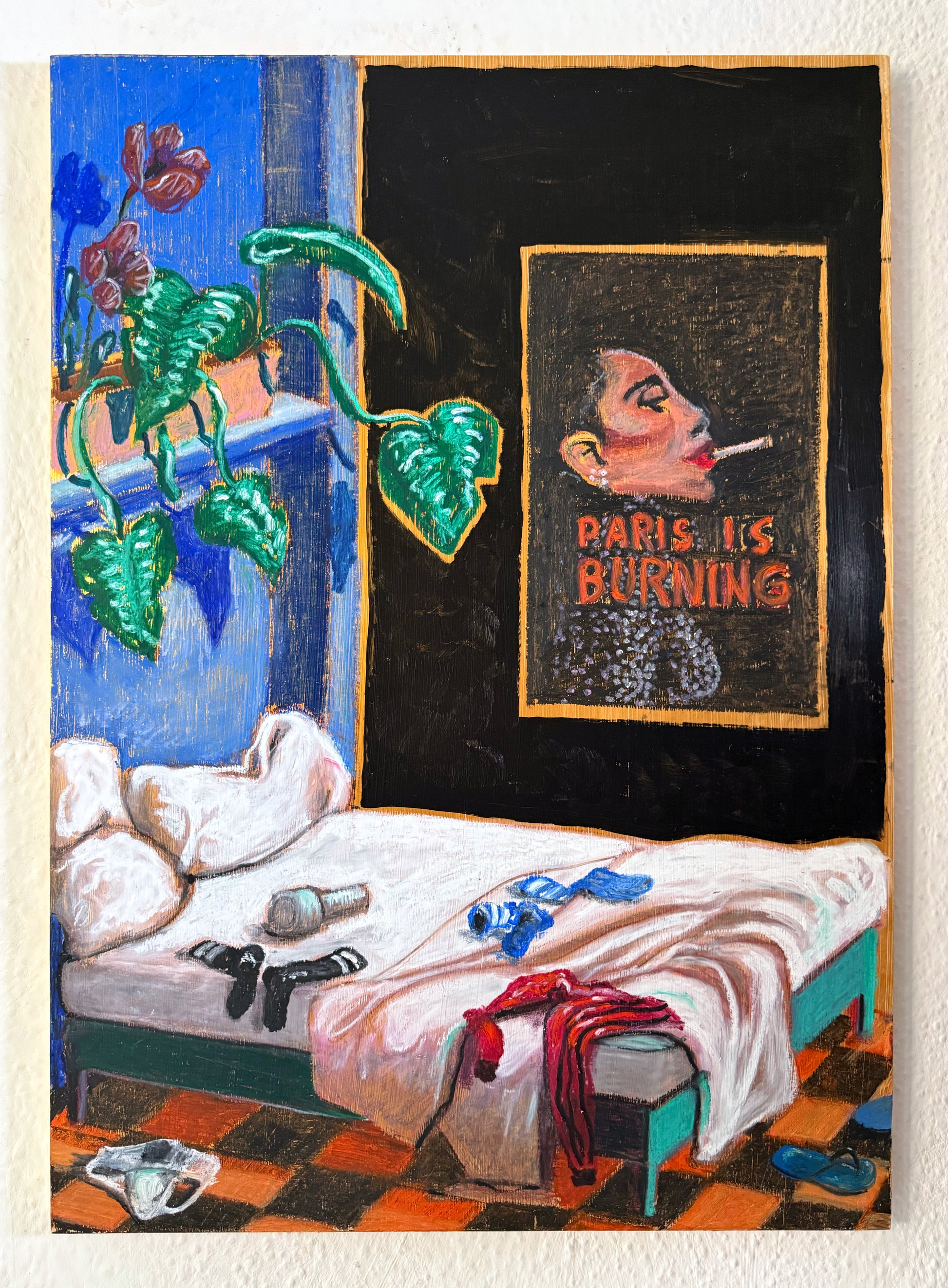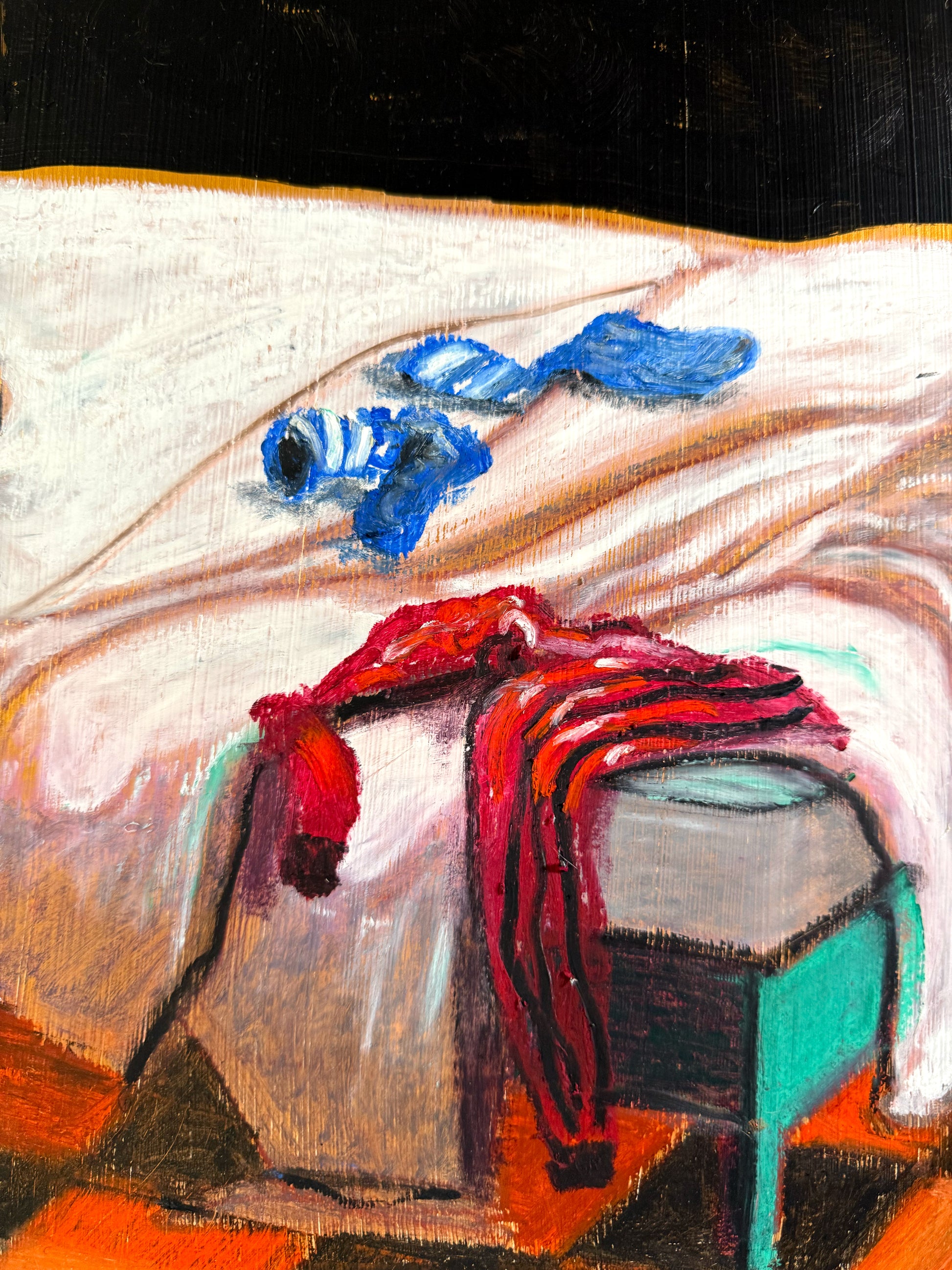 70 x 50 x 1.8 cm, Acrylics, oil pastel and spray varnish on wood board, 2025
