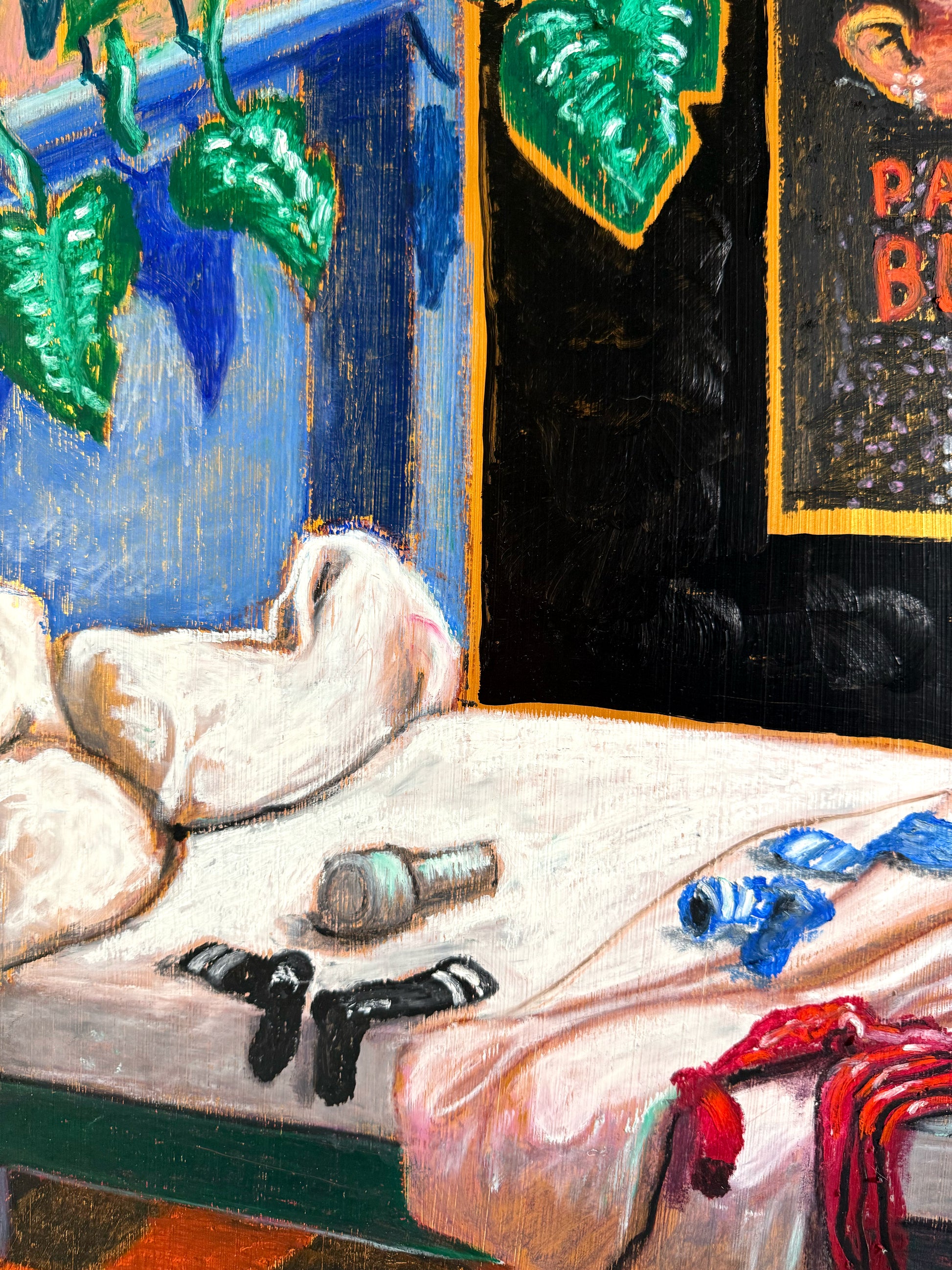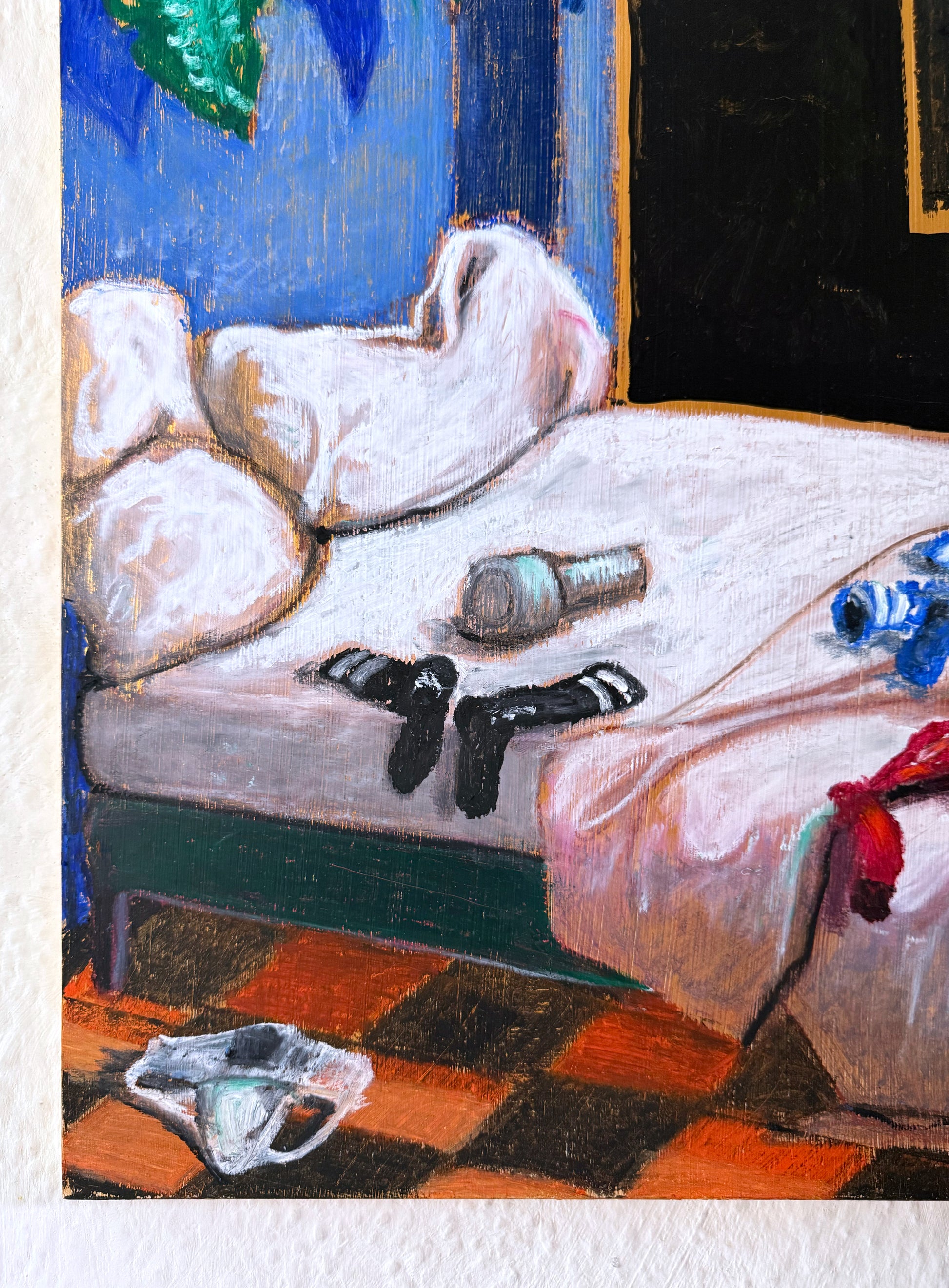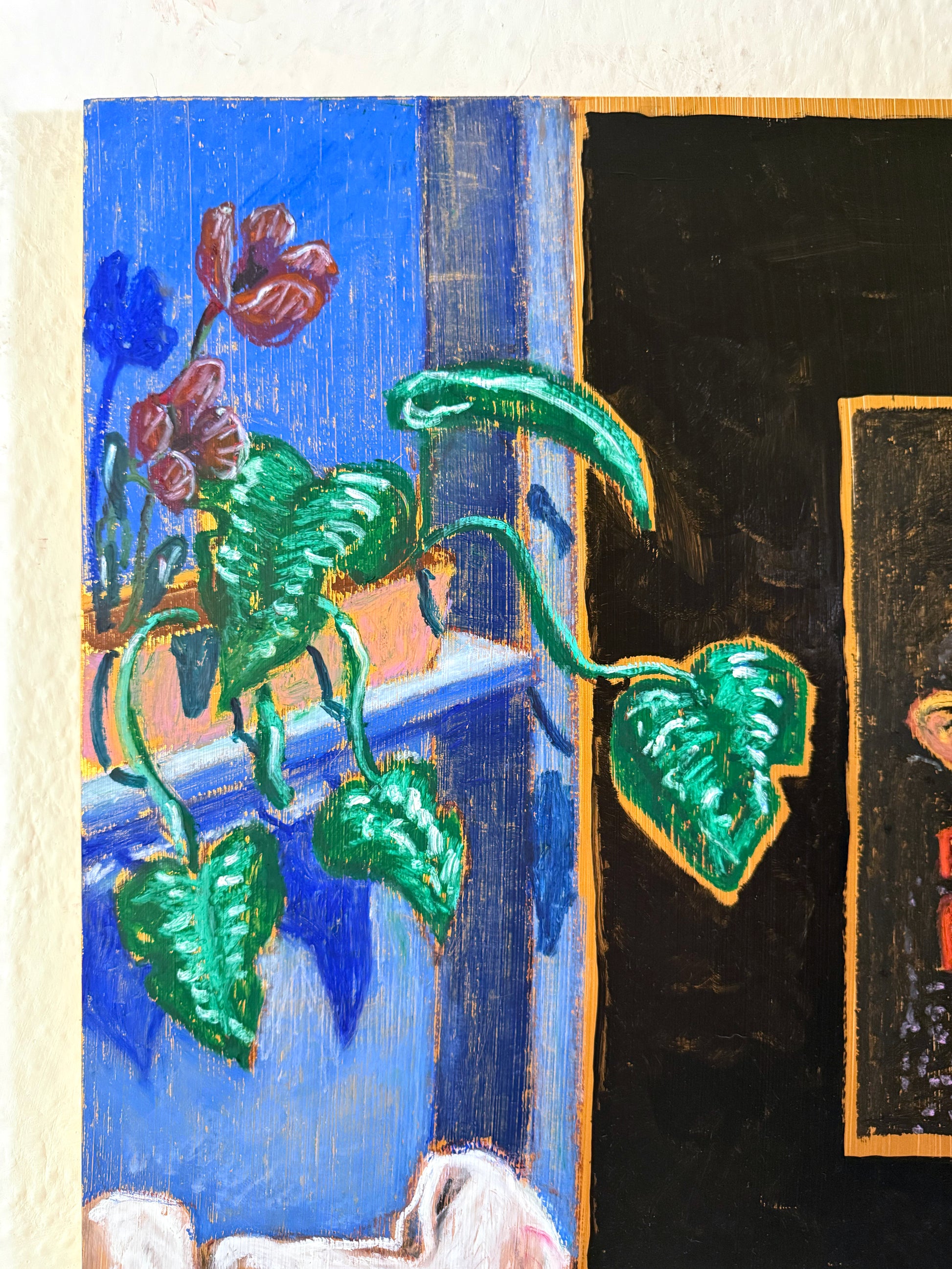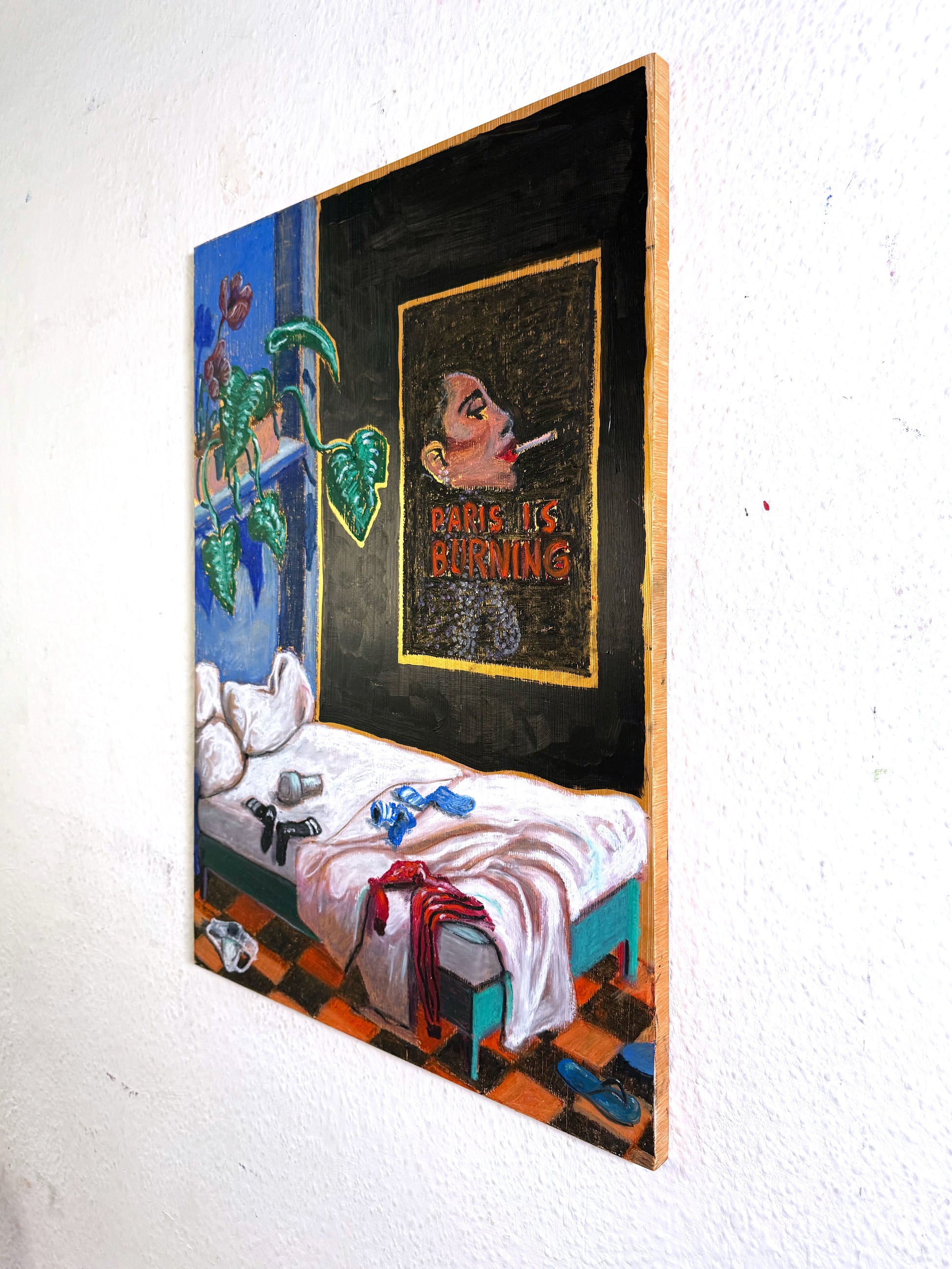 70 x 50 x 1.8 cm, Acrylics, oil pastel and spray varnish on wood board, 2025