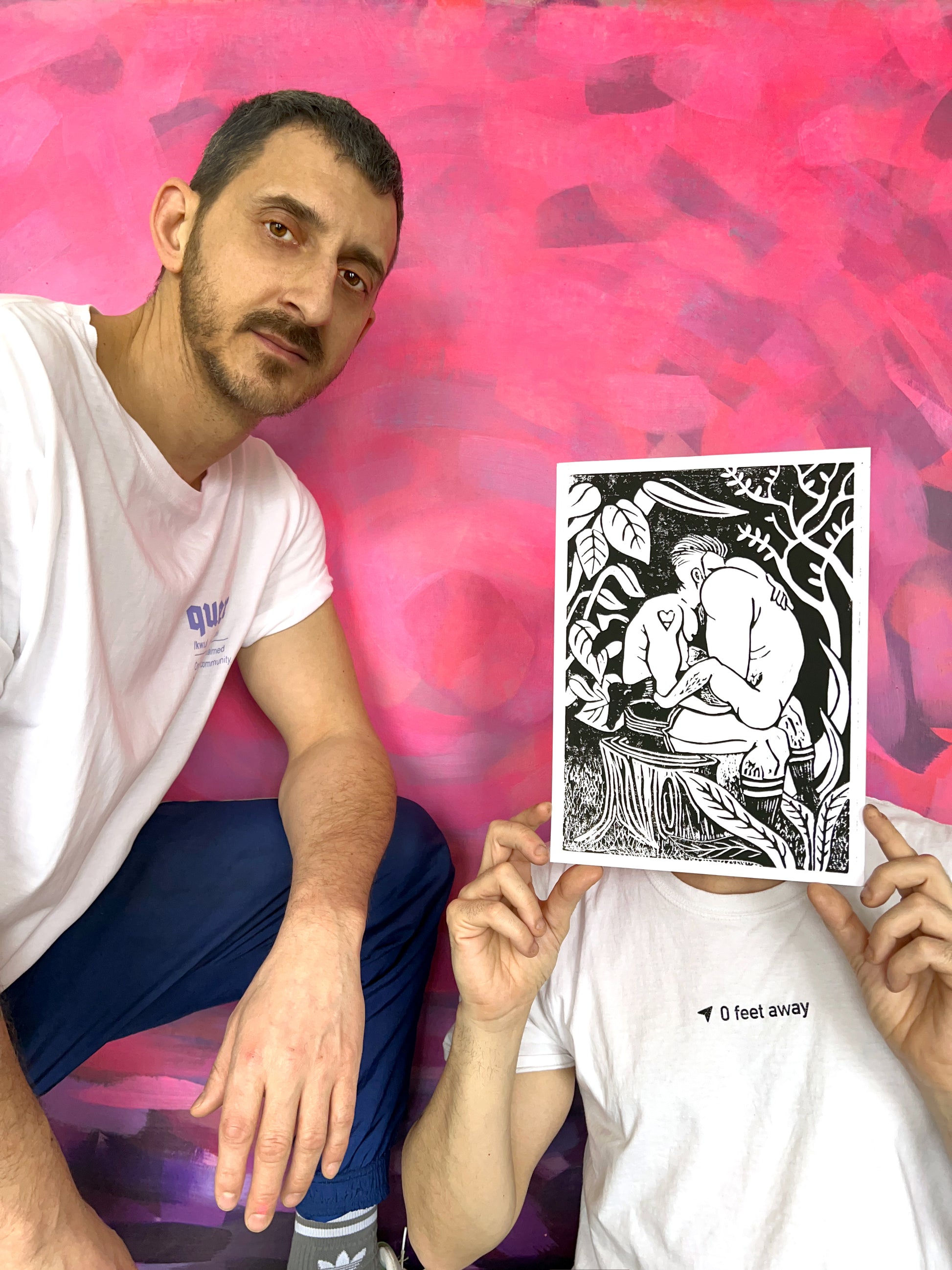 The Acrobats, Lino Cut Print, 31,7 x 23 cm, Handmade print on 300g white paper with black ink, 2024.