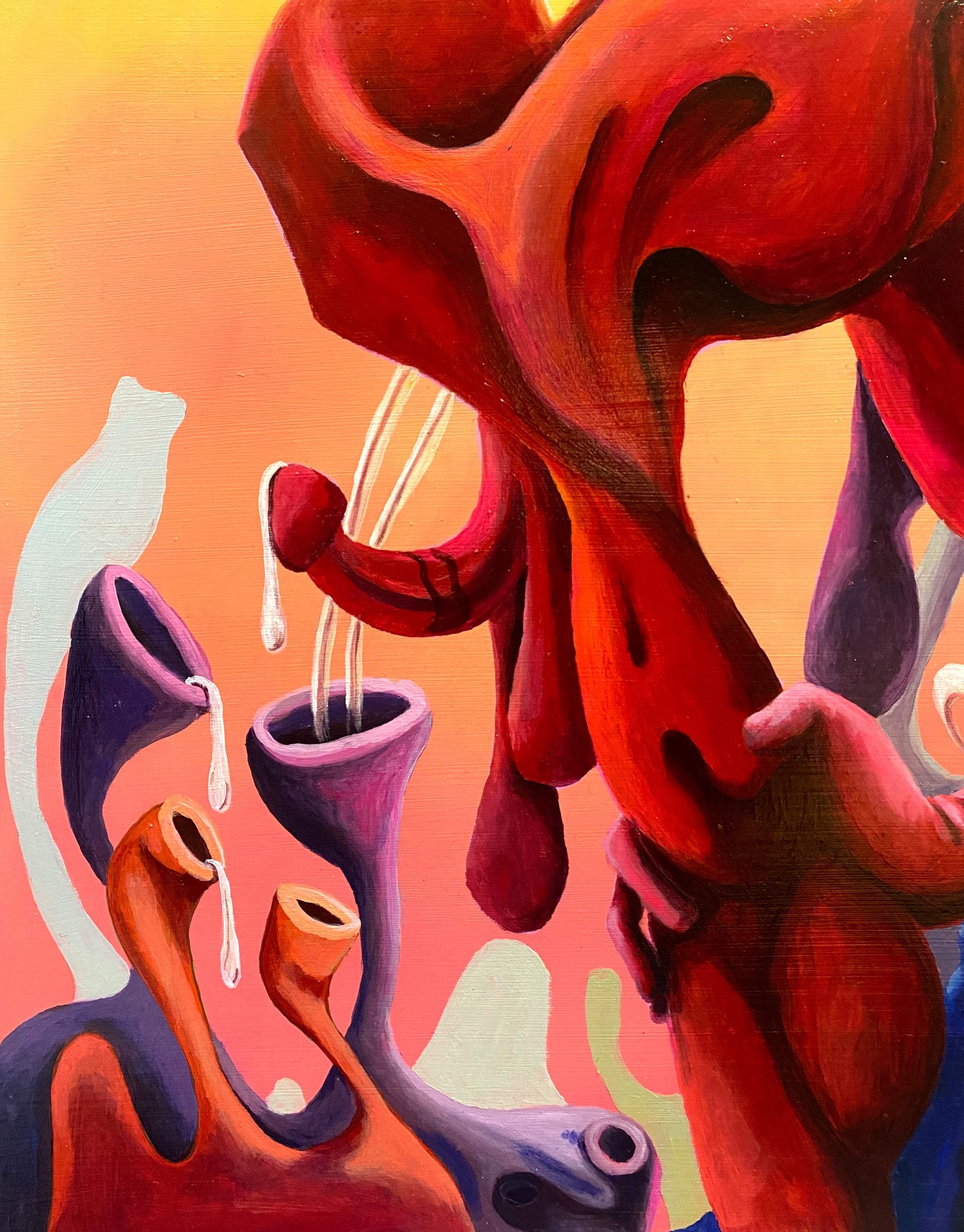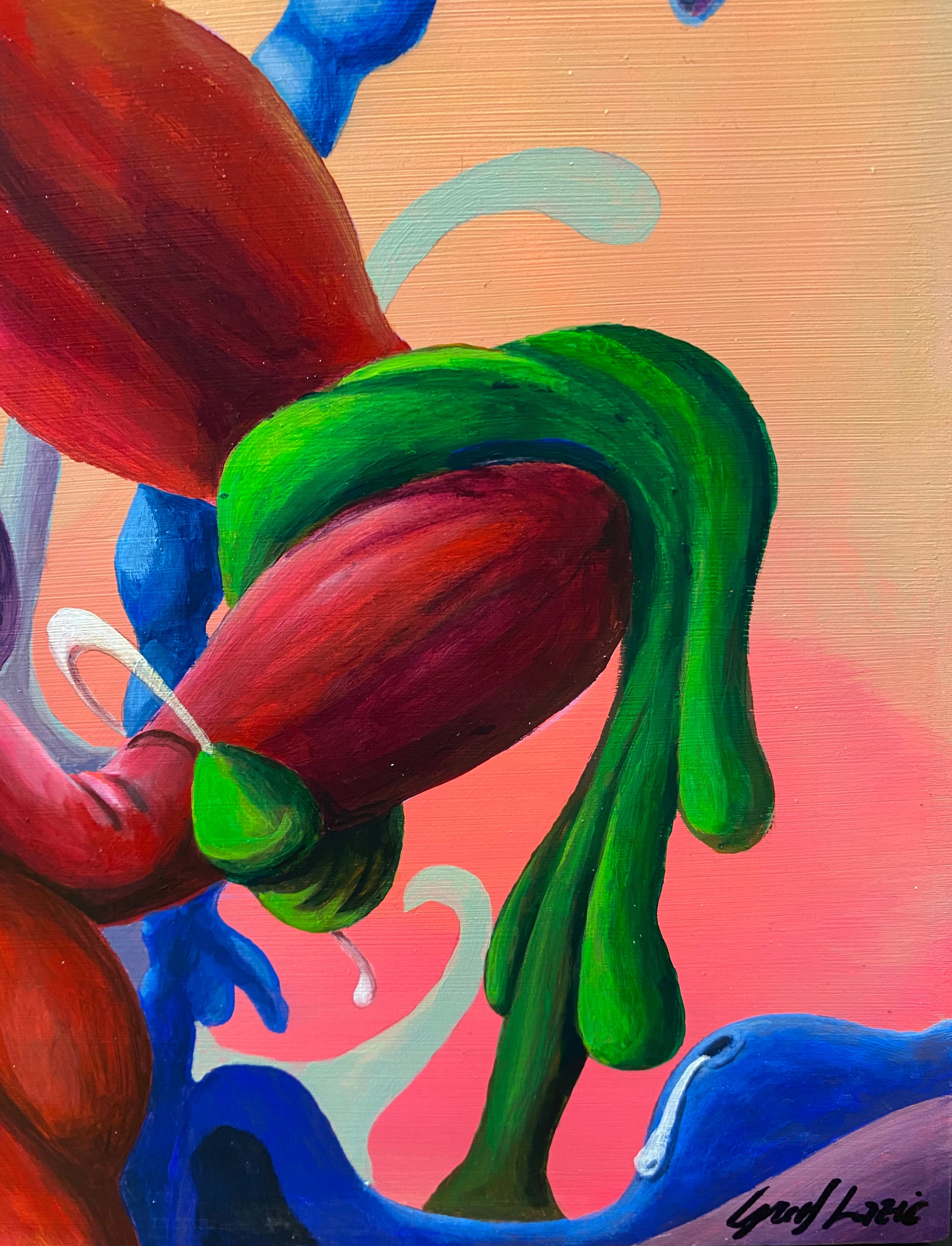 The Shapes of Pleasure: The Flow State, Painting, 52 x 42 x 1.5 cm, Acrylic on wood board 2023.